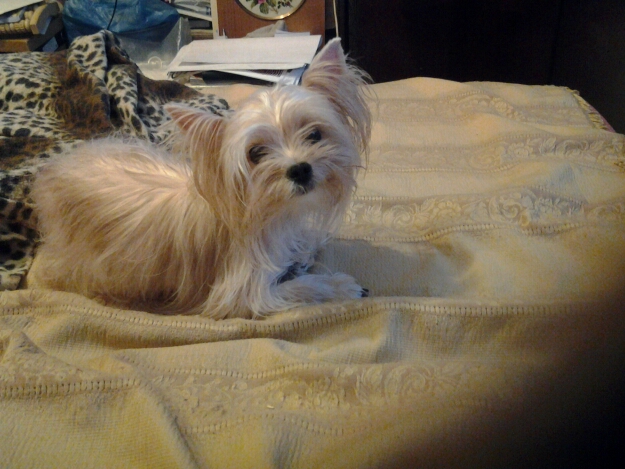 А это мой зверь. Порода - русская салонная собака (выведена из трех пород, в том числе и йорка). Полтора года назад я здесь на форуме спрашивала совета о том, какую бы маленькую собачку мне приобрести. Случайно наткнулась на новую породу, съездила и купила бракованного щенка (она не подходила по оброслости и расцветке для выставок). Ну а мне-то все равно. Мы в неё влюбились всей семьей. А месяц назад взяли вторую, не щенка. Пристраивала заводчица 2-х летнюю собаку после кесарева сечения, вязать её не будут. Первая наша собака крупновата - 4кг, а вторая - 2кг, как я и хотела. Они очень разные и по внешнему виду и по характеру. Вторую зовут Каролина (Кэрри) , а я зову Кирюша. Фото пока нет.