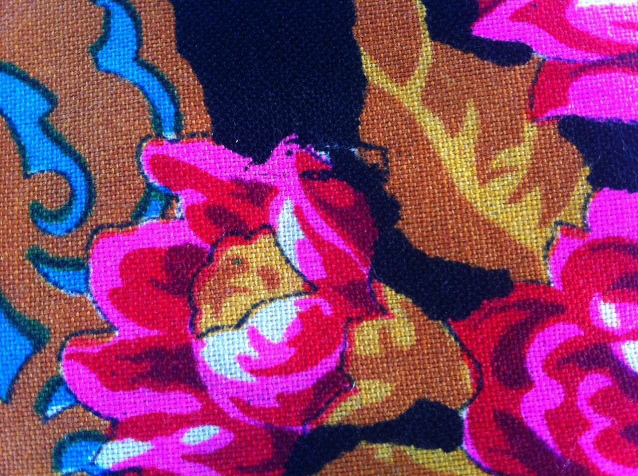 Ну а насчет качества печати.... так шаль то ручной набойки >< Печать 80-х годов. Я видела несколько аналогичных шалей, на шерсти правда, очень похожее качество печати. При ручной набойке тоже разное качество ( как сейчас 1 сорт, стандарт и 3 сорт). У меня была шаль Юбилейная, очень яркие цвета, в т.ч. синий, четкая печать. А потом появилась вторая шаль Юбилейная. У неё печать намного хуже, примерно как на Вашей шали и синий цвет другой. Он и по оттенку и другой, и бледнее и как бы не пропечатан хорошо. А все остальные цвета такие же яркие, как на первой шали. (Кликните, чтобы почитать, что спрятано под катом)...