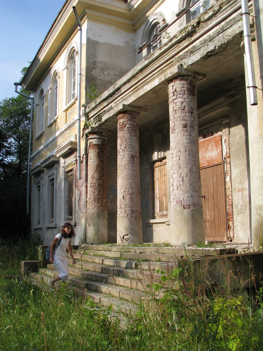 Окрестности компенсируют всю несуразность здания. Великолепный хвойный лес, сохранившееся постройки позапрошлого века, пляж на реке, цветники и множество кошек ::