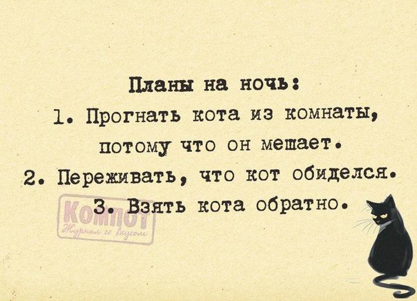 Harita писал(а):Моя кошка не обидится :) просто не даст никому спать, будет скрестись всю ночь под дверью и гонять собаку. И весь этот зверинец будет ходить за закрытыми дверями дышать, скулить и мурчать :lol: