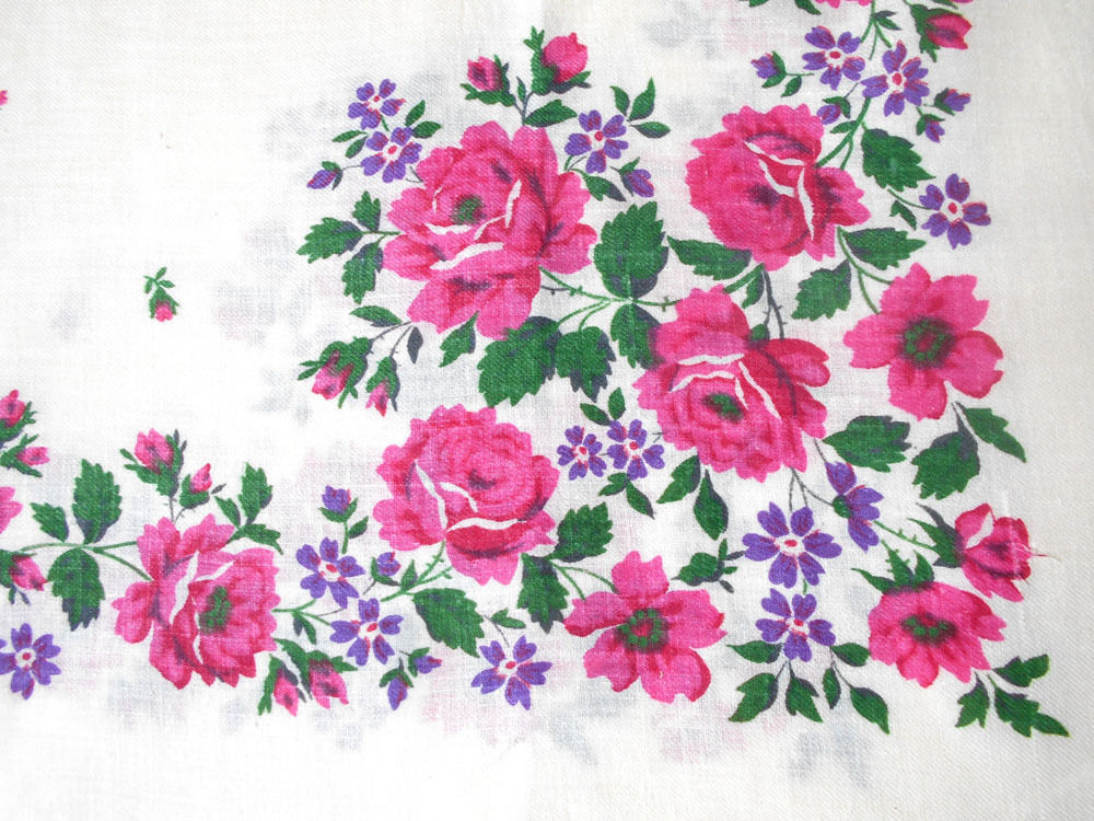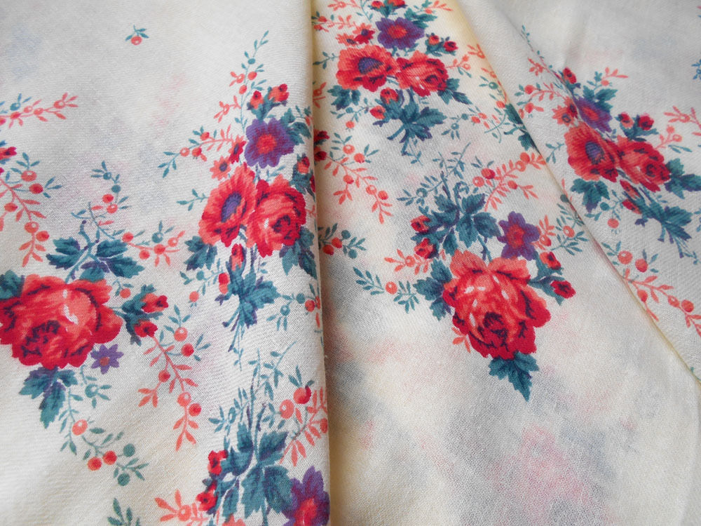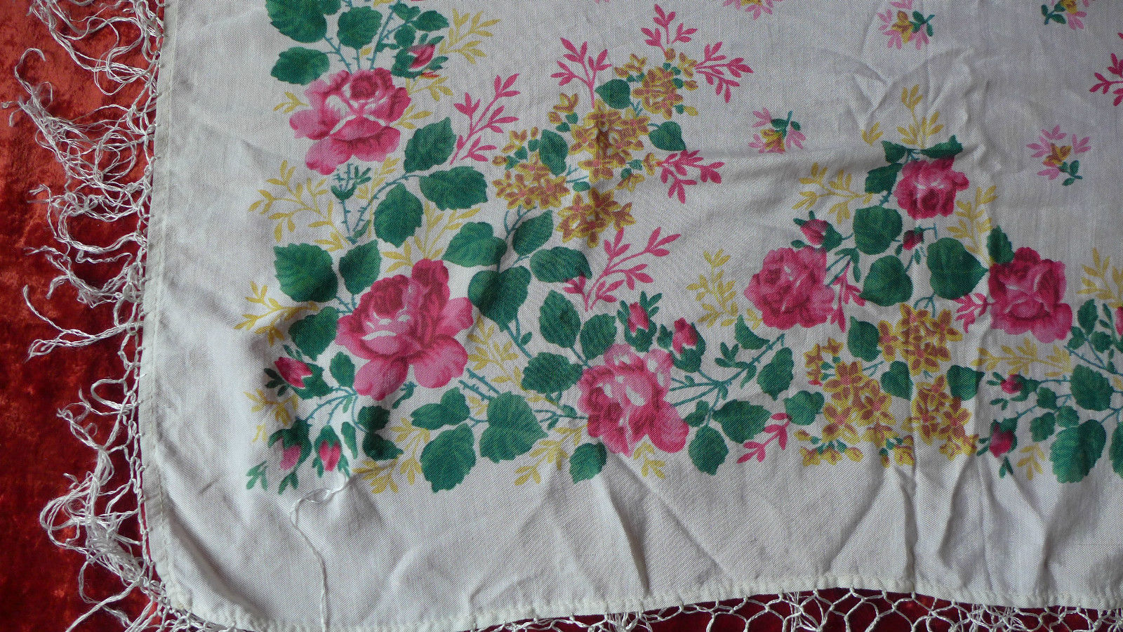 Добавлю два платочка 90х90 одного рисунка, напечатанного на смесовой ткани с вискозной бахромой: