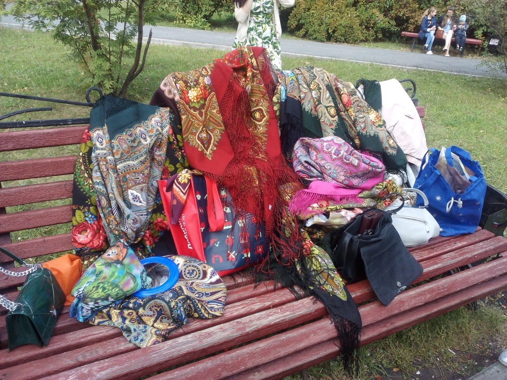 " Почём продаете?" , " Не продаете? >< ", "Это, что, реклама какая то?", " Так все таки почем шали?", " А чьи (производитель) это шали?", " А зачем вам столько? " (Кликните, чтобы почитать, что спрятано под катом)... и все в таком духе.