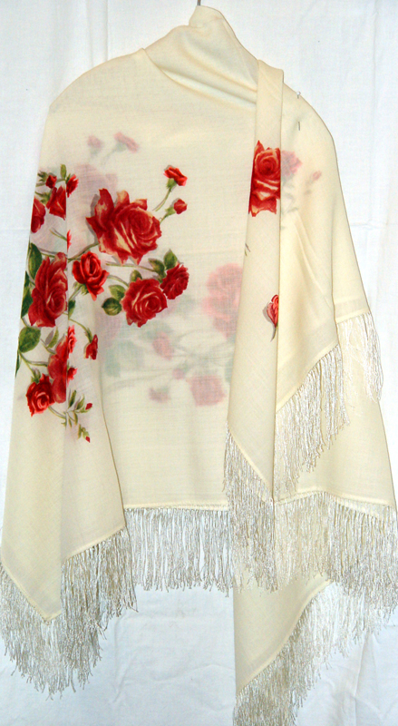 Розы на снегу 1227-1, Валерия Фадеева, шерсть, 146 на 146, шелковая бахрома. Varezhka уже показывала этот платок, пусть еще будет. Очень красивый, невесомый, нежный и очень стильный. Странно, но продавщица сказала, что их еще печатают, уж и не знаю, так ли это.