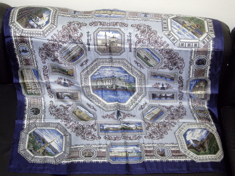 Заказывала этот платок исключительно для коллекции, - казалось, что такой платок носить вряд ли удасться. А вот повертела его за выходные в руках и обнаружила, что можно красиво драппировать так, что почти фотографические изображения города ложаться очень красивыми мазками среди орнамента. А какой цвет! Думаю, что буду его носить, а не только любоваться в коллекции. Вот такой радостный вывод!