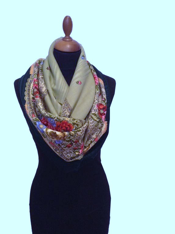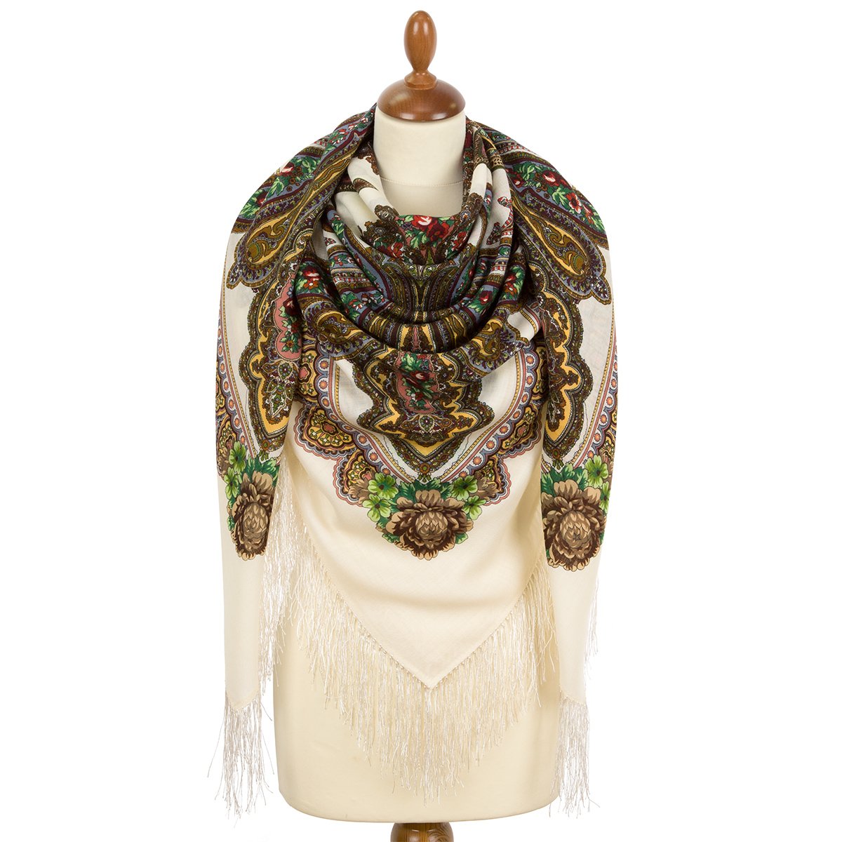 Шерстяной платок 146х146, современная печать на ткани с просновками