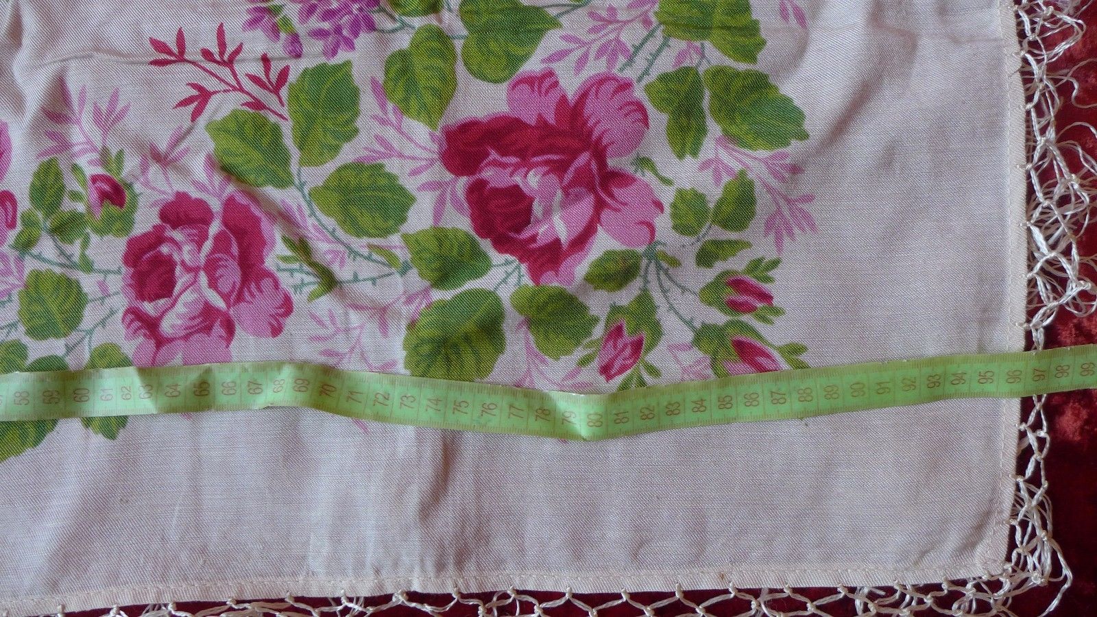 Добавлю два платочка 90х90 одного рисунка, напечатанного на смесовой ткани с вискозной бахромой: