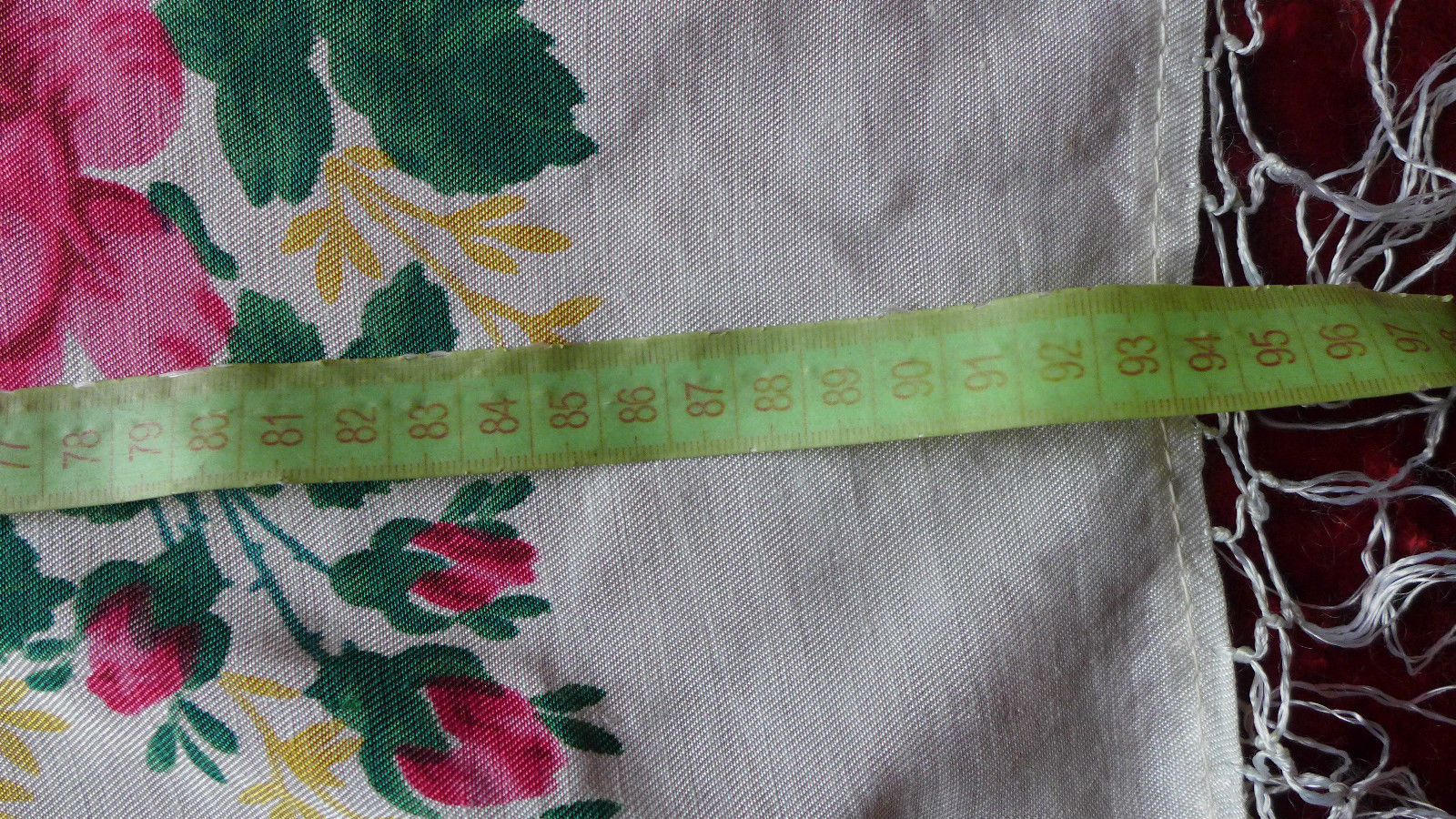 Добавлю два платочка 90х90 одного рисунка, напечатанного на смесовой ткани с вискозной бахромой: