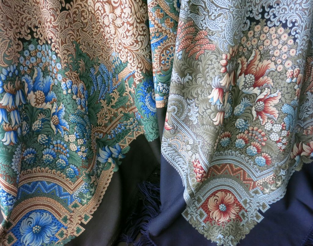 "Бархатная ночь" 538-14 и 30, Татьяна Сухаревская, сравнение на скорую руку. Чудный платок, спасибо художнику за рисунок и Мануфактуре за перевыпуск )