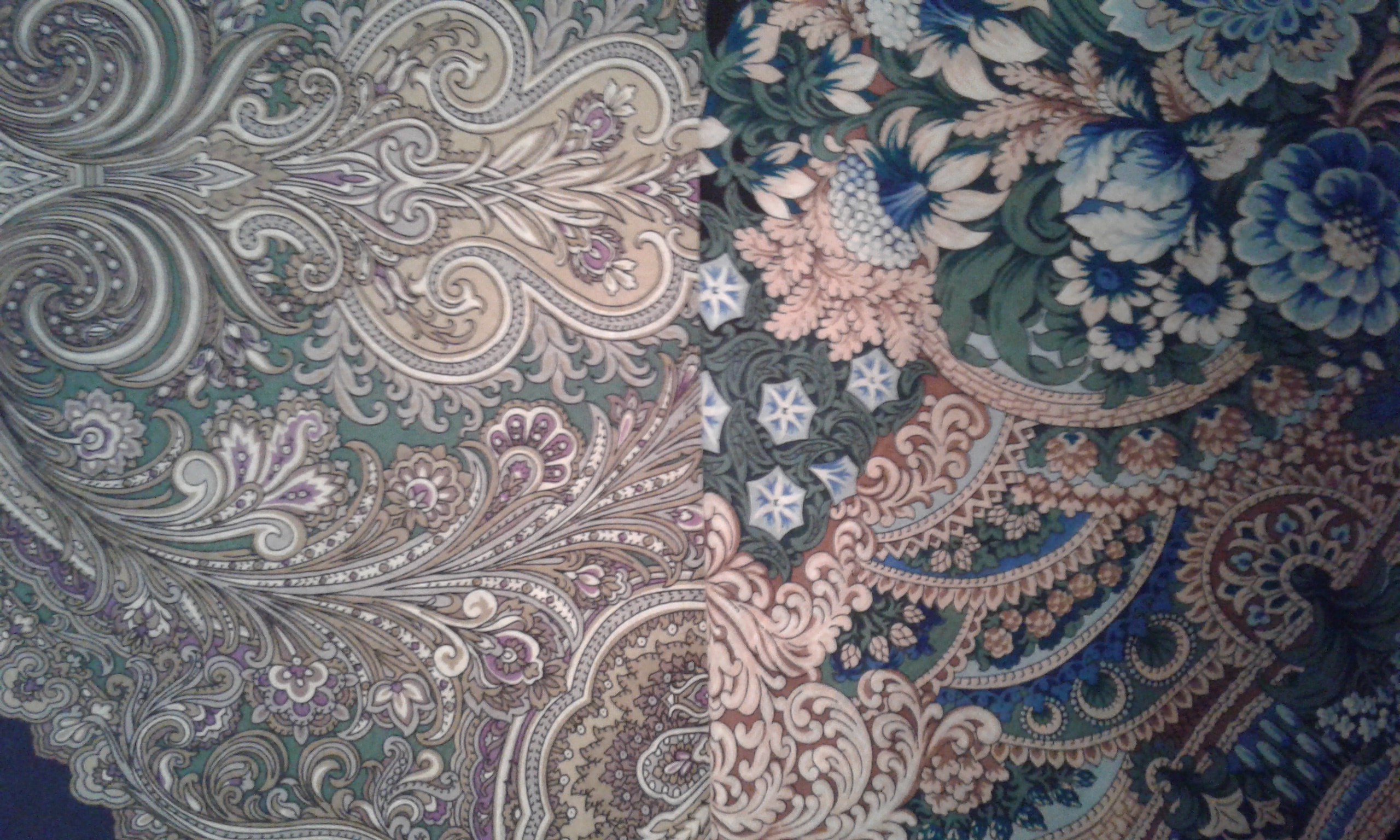 "Бархатная ночь" 538-14 и 30, Татьяна Сухаревская, сравнение на скорую руку. Чудный платок, спасибо художнику за рисунок и Мануфактуре за перевыпуск )
