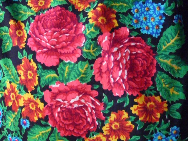 Шаль 148х148 с цветочным мотивом с пышными розами, хризантемами (астрами? георгинами?),