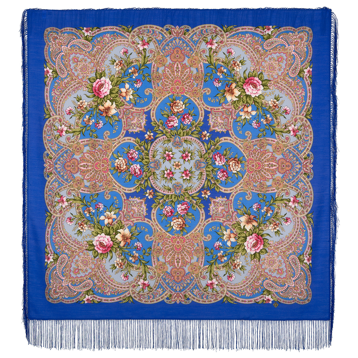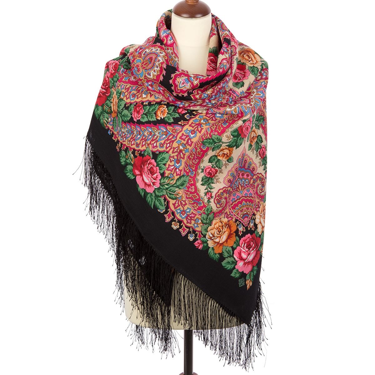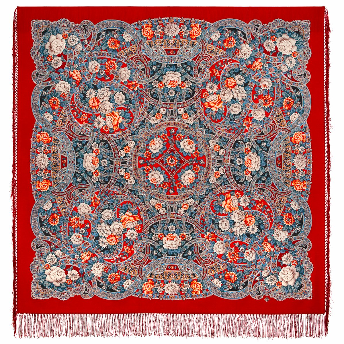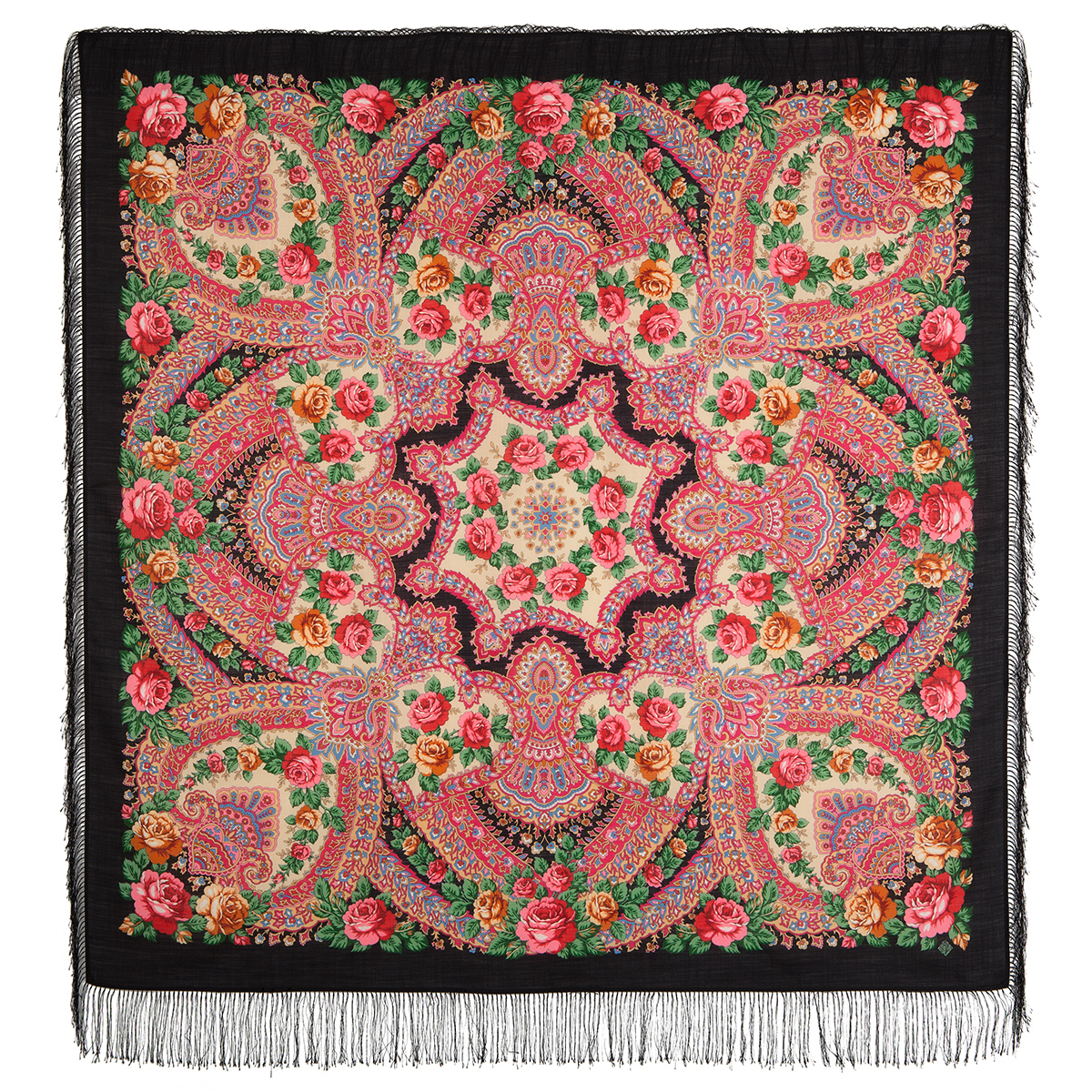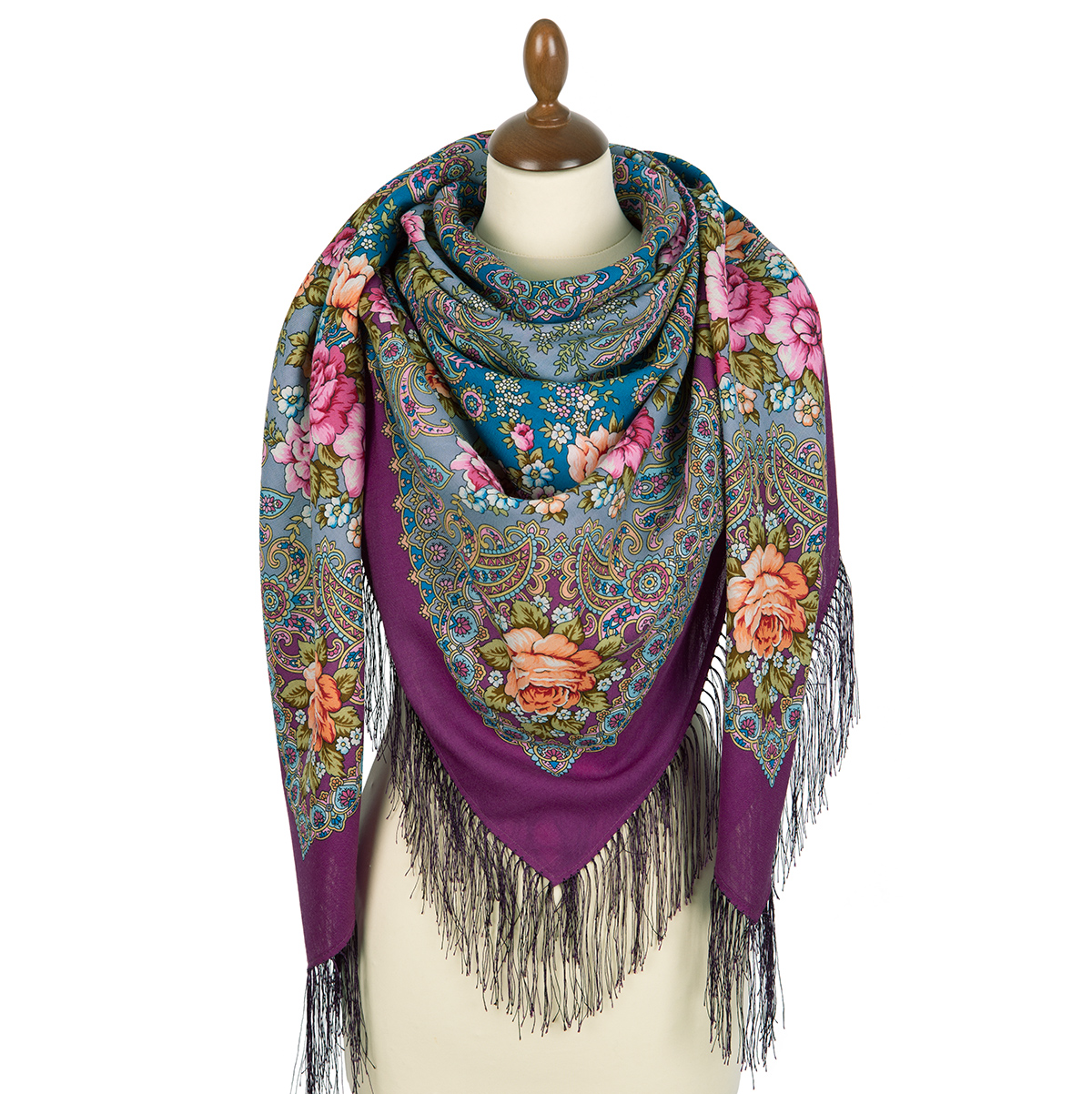 Платок шерстяной с шелковой бахромой, 125х125 см.