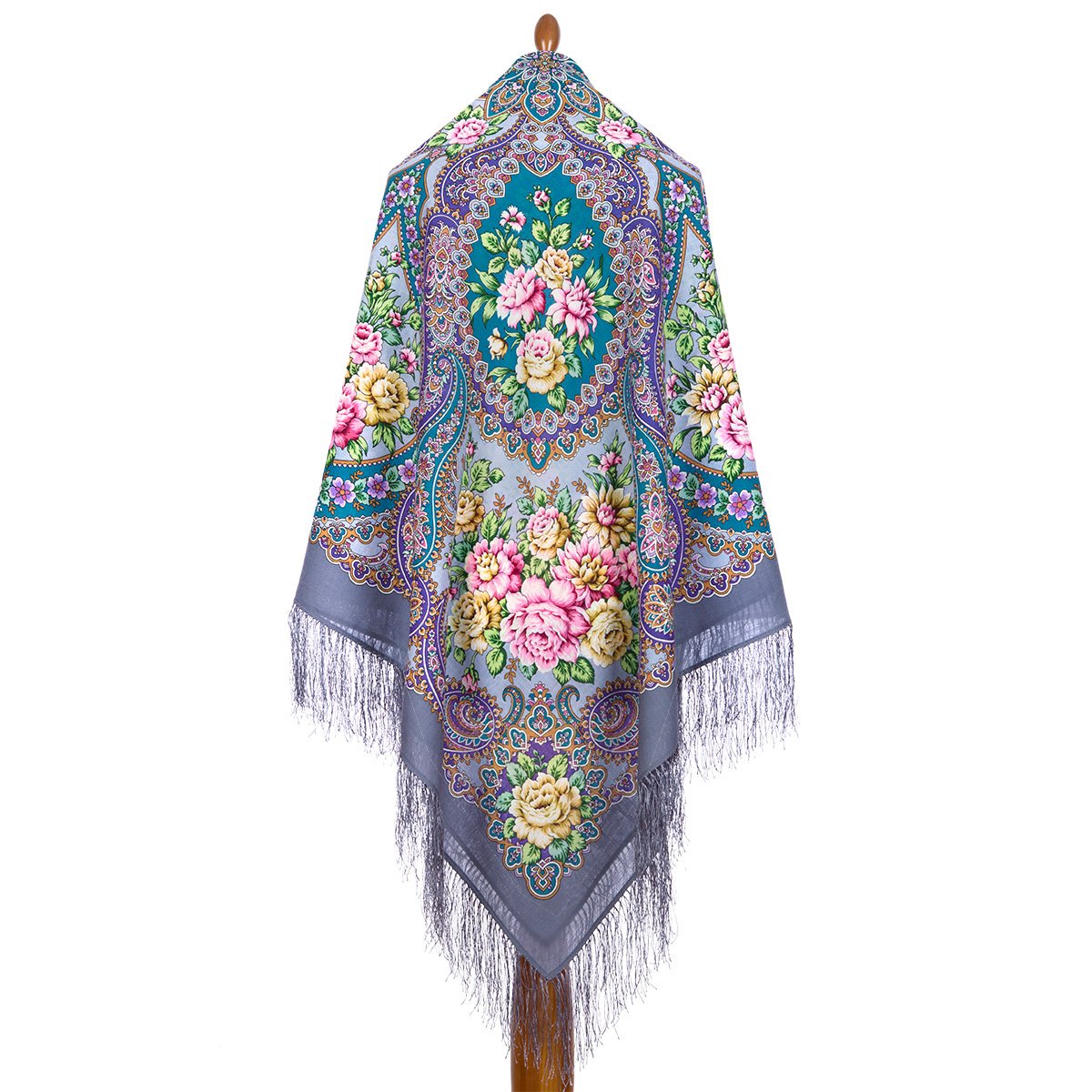 Платок шерстяной с шелковой бахромой, 125х125 см.