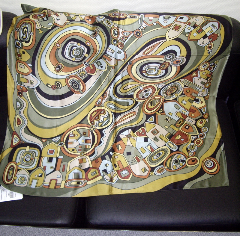 Фотографировала на черном диване, чтобы рисунок был виднее на черном фоне платочка.