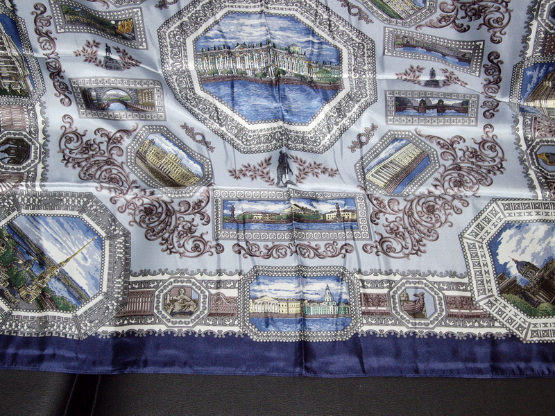 Заказывала этот платок исключительно для коллекции, - казалось, что такой платок носить вряд ли удасться. А вот повертела его за выходные в руках и обнаружила, что можно красиво драппировать так, что почти фотографические изображения города ложаться очень красивыми мазками среди орнамента. А какой цвет! Думаю, что буду его носить, а не только любоваться в коллекции. Вот такой радостный вывод!
