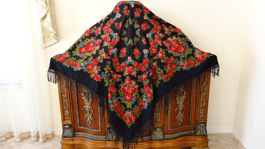 Какая прелесть черные хлопковые платки с красными-красными розами!