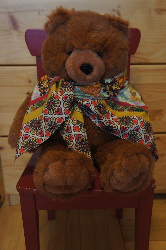 Мой мишка тоже захотел сфотографироваться в летних платочках.