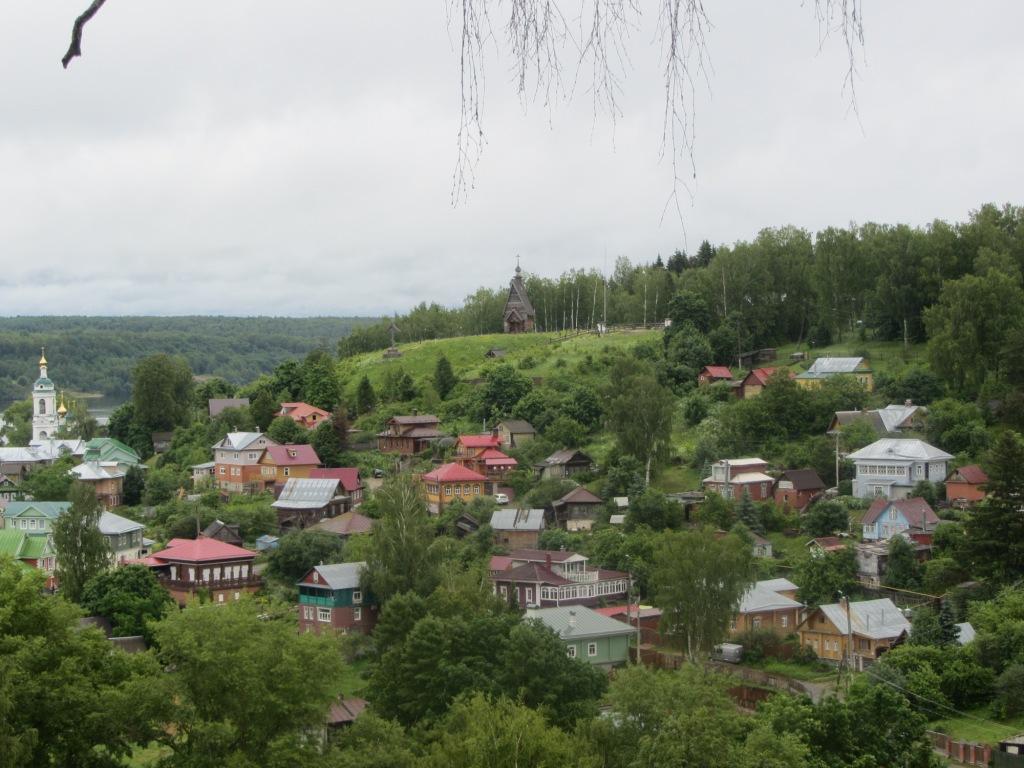 Мы походили по горам и косогорам, поднялись на гору Левитана. Убедились, что его картина «Над вечным покоем» - это фантазия художника, потому что такого места здесь в принципе нет, хотя церквушечка стоит. Погост тоже есть, правда муж высказал некоторые сомнения насчет аутентичности некоторых крестов. Народ присутствует, не толпой, но проникнуться трепетом всё равно мешает.