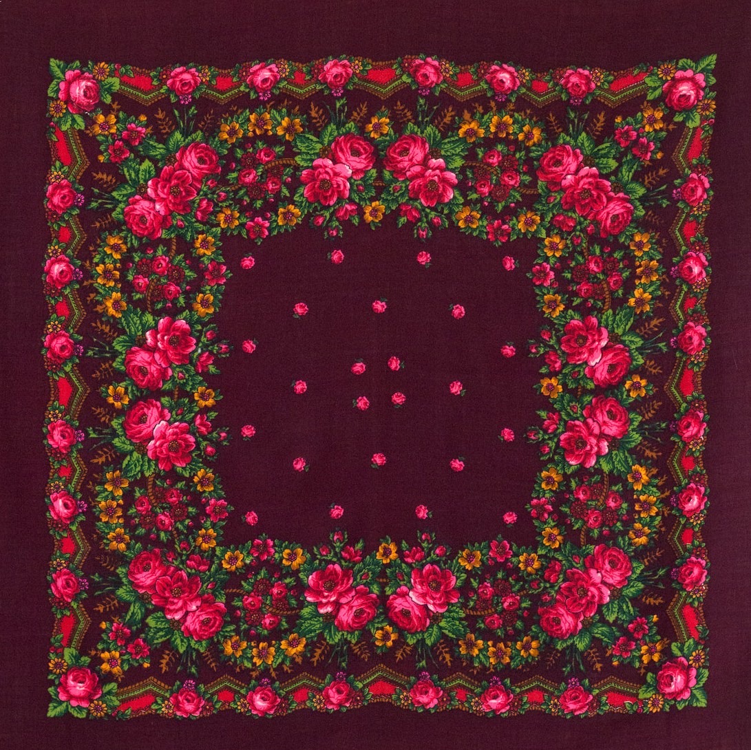 Платок шерстяной 95х95 с цветочно-орнаментальной композицией с фестонами по краю орнамента. 1980-е гг.