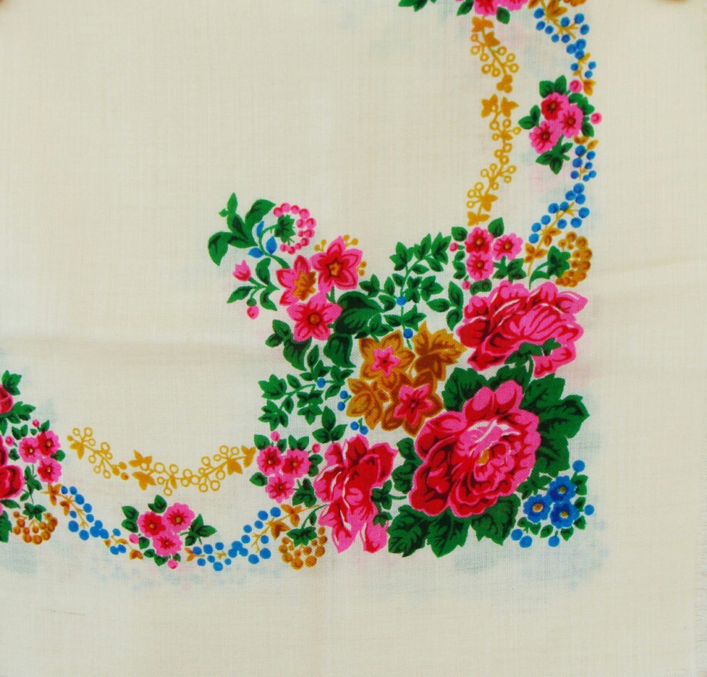 Другой платок аналогичного колорита с этикеткой киевской фабрики ТРОЯНДА