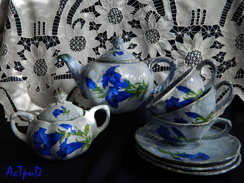 Поискала информацию о производителях в интернете. Голубой сервиз сделан на керамическом заводе Ditmar Urbach информации о нем в интернете немного, завод находится в Чехии, но на моём сервизе написано Deutschland, с такой маркировкой изделия выпускались во время захвата Чехословакии Германией с 1940 по 1945 года.