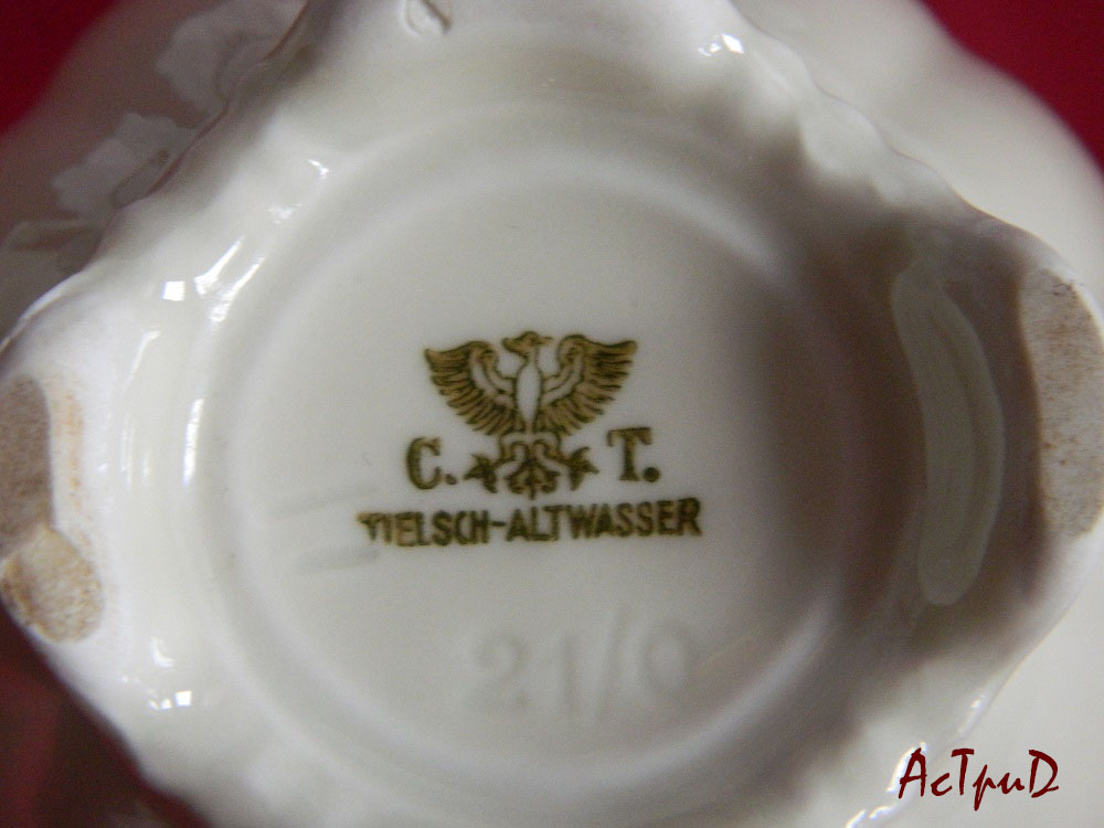 Сервиз цвета слоновой кости изготовлен на немецком предприятии Tielsch Altwasser, судя по клейму сервиз изготовлен в промежутке с 1932 по 1935 года. После войны предприятие оказалось на территории Польши.