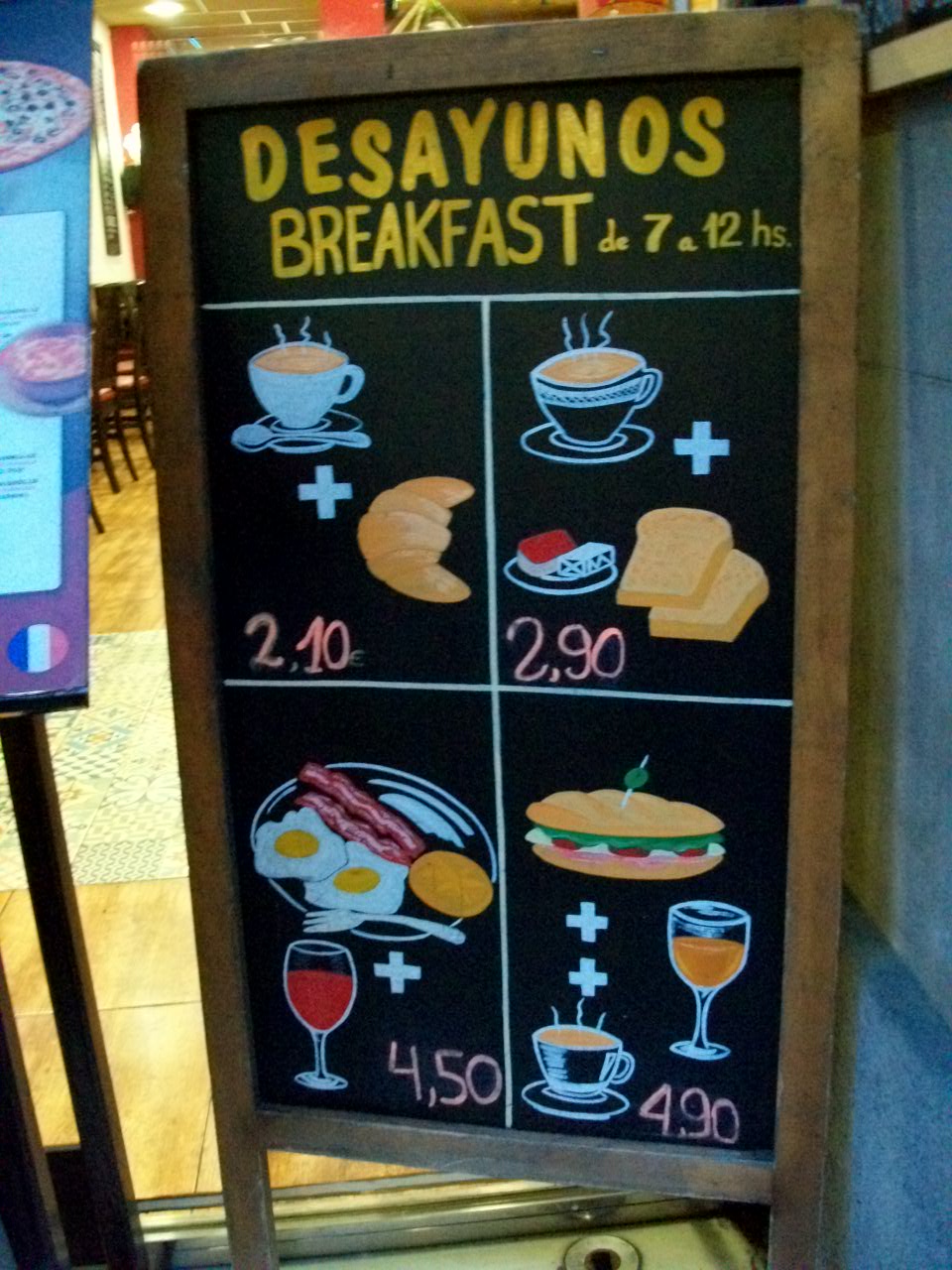 Ела я там где уже возле двери есть меню с ценами. Самое дешевое позавтракать кофе + выпечка.