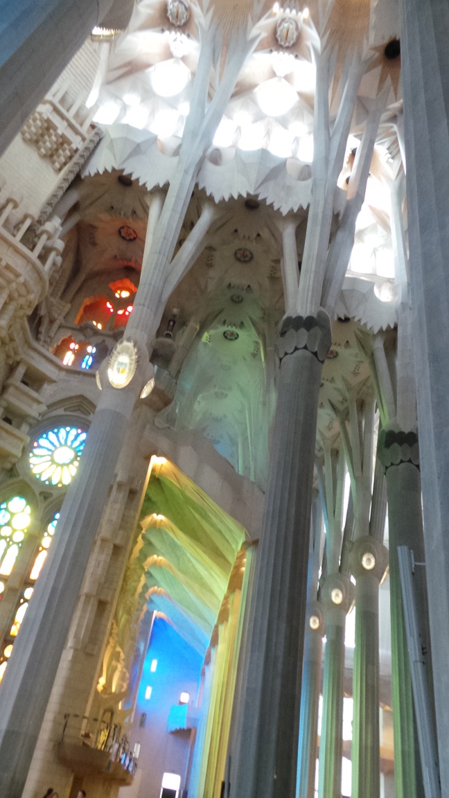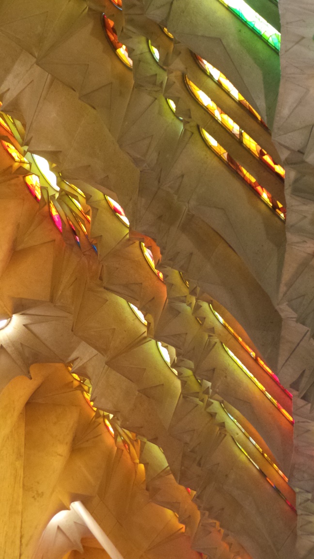 Не уверена, что будь высота Саграды немного поменьше - эффект радужного света был бы такой же. У Гауди же везде и во всем точный математический расчет ( в музее Саграды это видно - модели, проекции, сложные конспекты и чертежи ...)