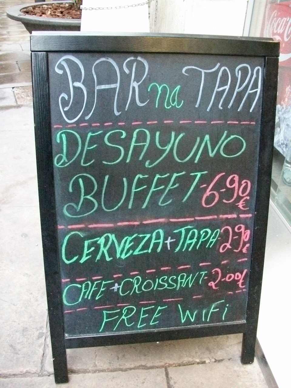 С обедом всё сложнее. Если воспользоваться предложением Меню дель диа, то придётся выбрать из нескольких вариантов первое блюдо (необязательно это суп, может быть салат или что то с морепродуктами), второе блюдо и десерт