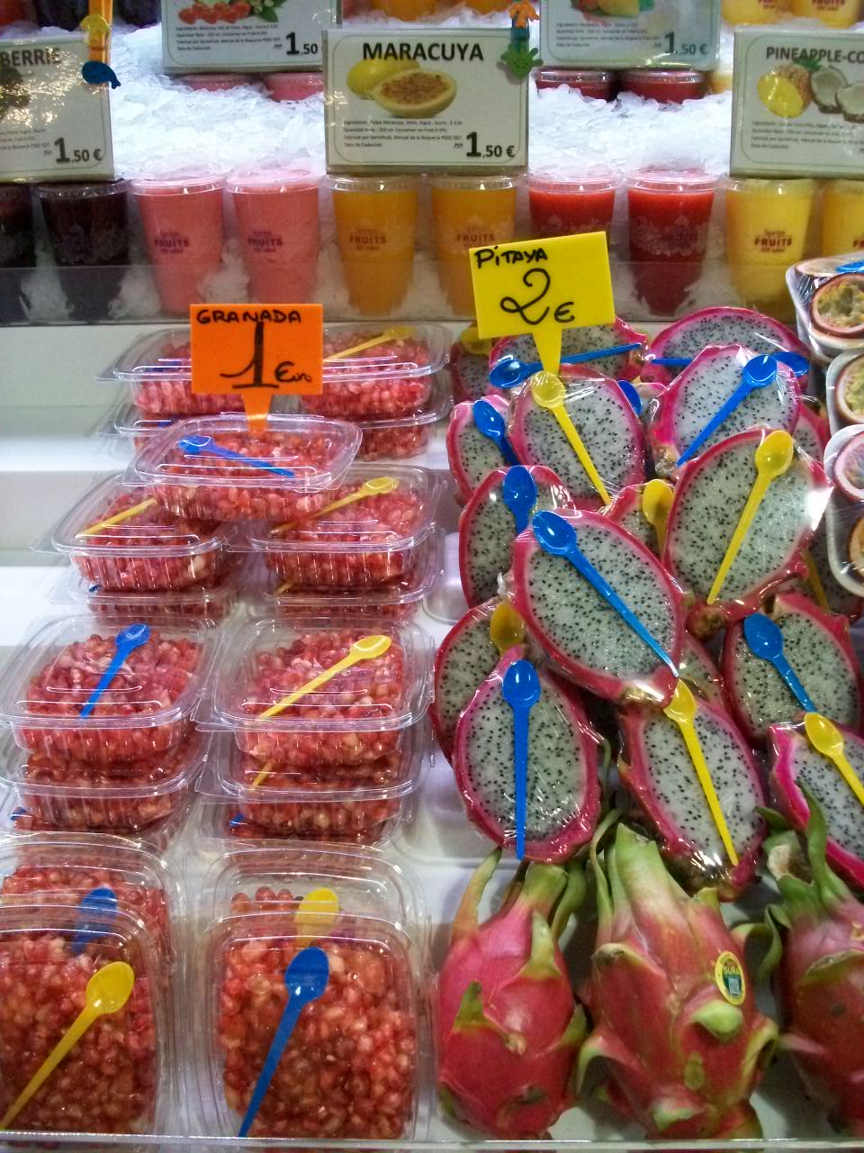 ещё можно пойти на знаменитый рынок Бокерия и купить еду уже расфасованную и даже с вилочкой. Но мне всё же хотелось бы вначале это самой помыть.