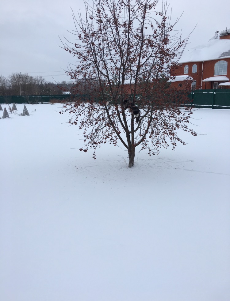 А яблок-то сколько на дереве, понятно почему Обамка туда полез, за птицами.