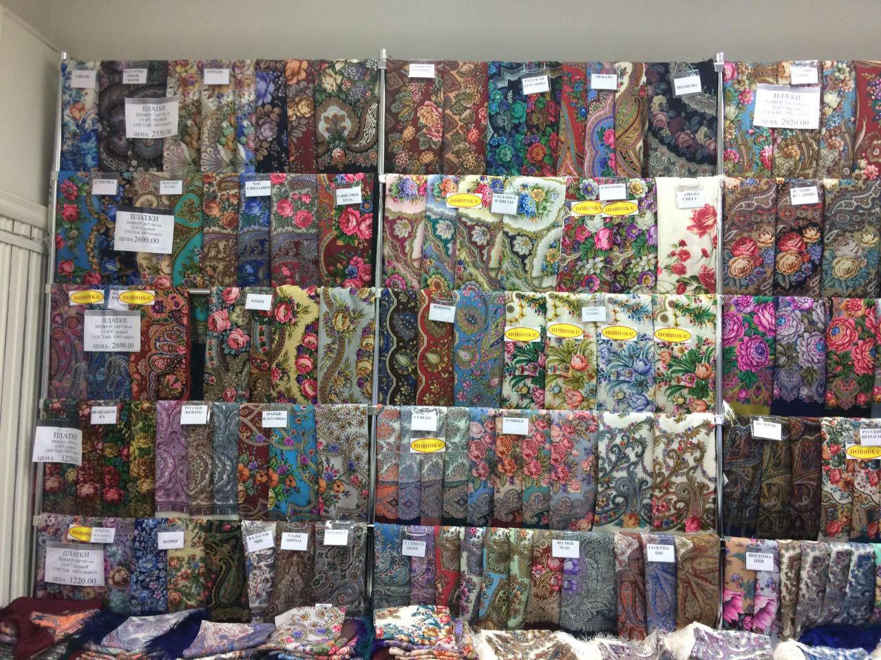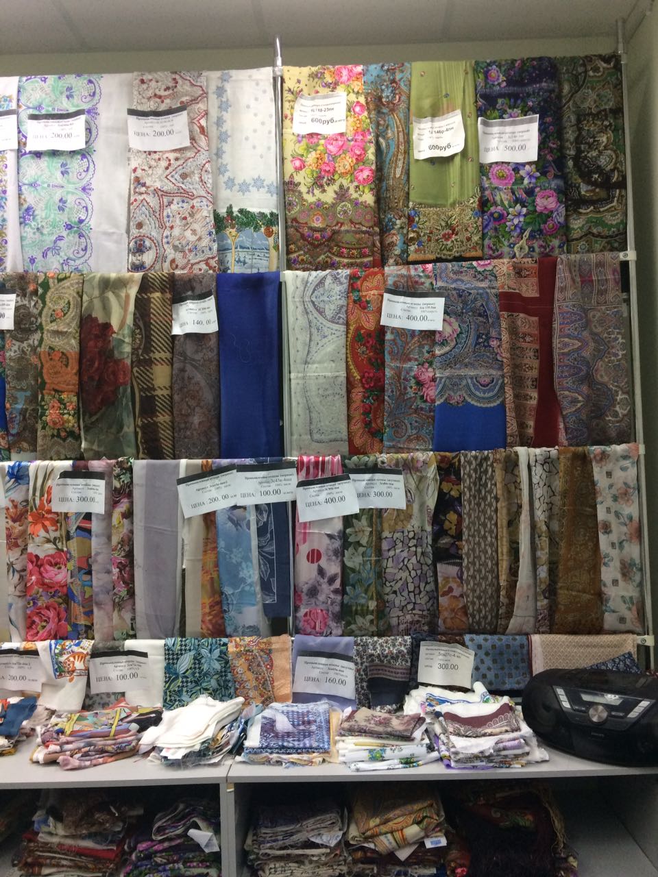 Витрина с шёлком третьего сорта и скатерти вверху
