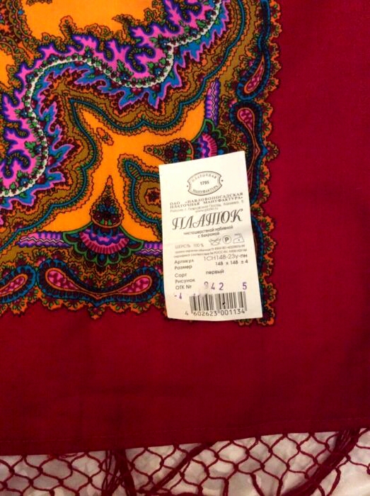 И еще то , что палочка с этикетками протыкает саму ткань платка , а не отдельно вшитую тряпочную бирочку.