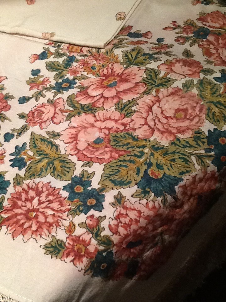 Ткань - хлопок, в точности на таком печатали хб шали в 1970-80-е гг в Павловском Посаде.