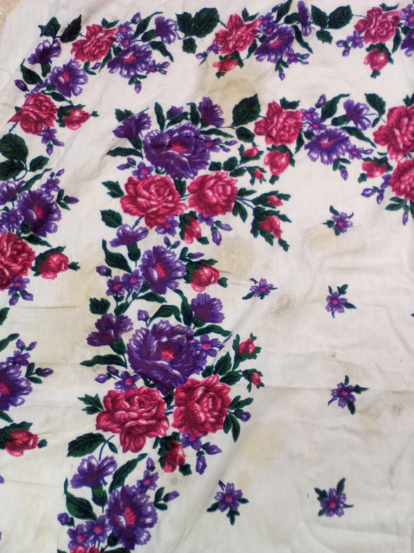 Интересный экземпляр. Но... вряд ли ему 100 лет. Возможно, шаль печаталась на Городковской фабрике в начале 50-х годов. Бахрома хорошо сохранилась. Я перенесу ваше сообщение в тему про старый посадский хлопок. Не возражаете?