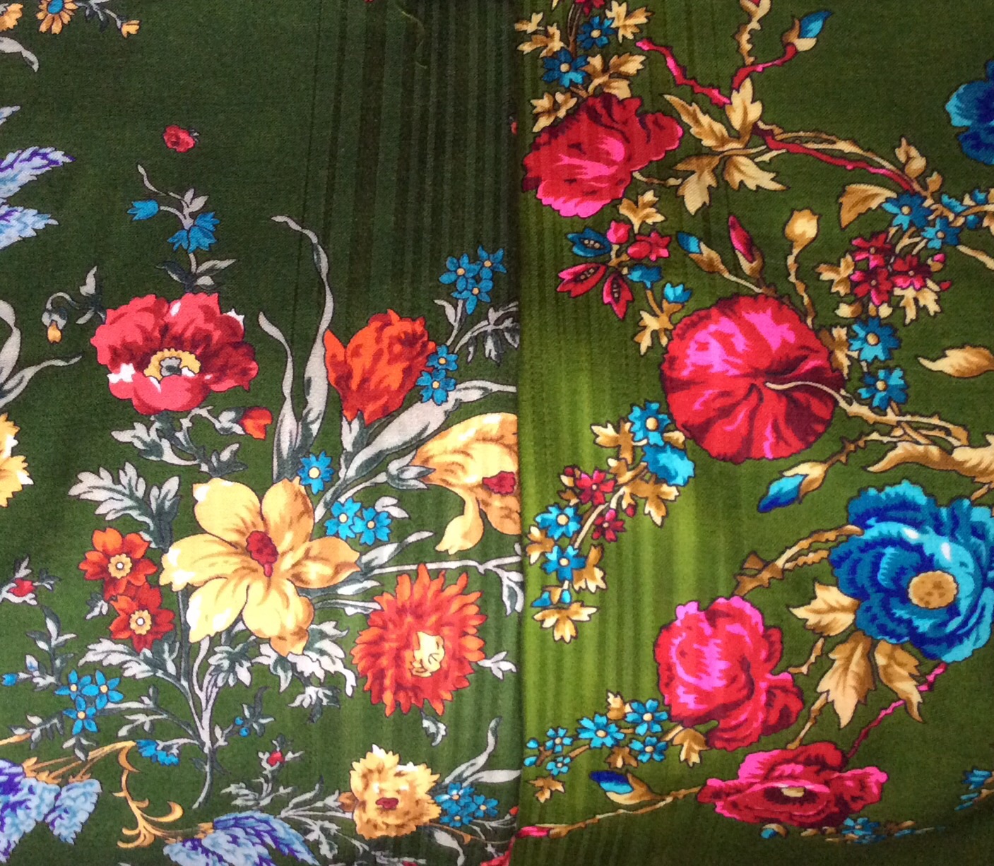 Валькирия, напомню еще одну зеленую шаль-красавицу - У самовара-9. Конечно, там много желтого и золотого. А вам,наверное, хочется что-то вроде Поля цветов, но чтобы фон такого цвета, как на Пелагее.
