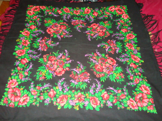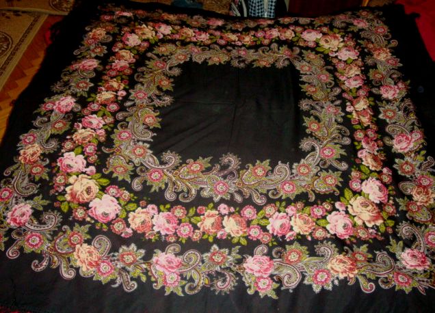 Мне кажется, что алый цвет во всех колоритах художником был выбран целенаправленно. В целом шаль производит очень теплые впечатления, не отталкивает.