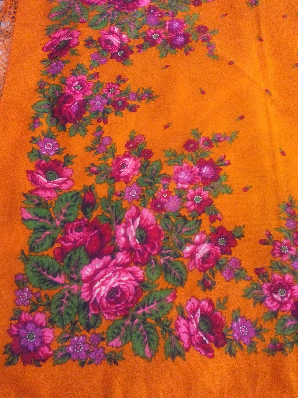 Добрый день! Вчера писала сообщение с просьбой опознать платок, большое спасибо за ответ. Но у меня ещё три платочка, вчера не смогла загрузить. Подскажите, имеют ли они отношение к павловопосадским.