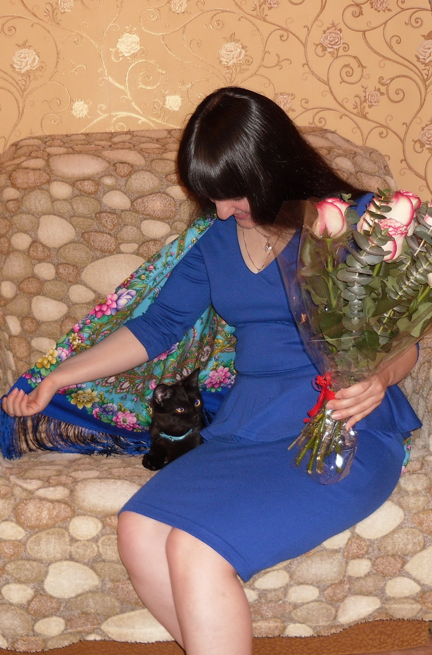 3 хвостик. Кошечка Машенька. Была подобрана в стоге сена в конце октября прошлого года, говорят она там мяукала 3 дня. Неделю шли дожди... и как раз в эту ночь передавали сильные заморозки. мы взяли этот маленький мокрый черненький комочек. Она была совсем крошечной, не умела кушать. была истощена. Мяукать уже не могла. Муж согласился взять ее так как оставить ее там означало убить. Так как пить она не могла я набрала молока в шприц, после первого миллилитра у нее так сильно забурчало в животике. Котеночек не отходил от меня ни на шаг, ее назвали моим хвостиком, даже когда я мыла посуду она вкарабкивалась на меня по одежде и даже 1 раз упала в мыльную воду. На лоток стала ходить раньше чем лакать из миски. Через какое то время я стала замечать у нее гнойные сопельки возле носа и хрипы в легких, мяукать она еще не могла, голоса не было. Понесла к ветеринару, сказали что у нее сильной воспаление легких. и назначили очень много уколов и прочих лекарств, котенку поставили возраст около 4х недель. Я тогда была в отпуске и носила ее каждый день на уколы, судя по ее поведению они были ужасно болючие, так как этот комочек даже рычал. Спала она у меня на плече. Мои кошки ее конечно очень долго не принимали, шипели, рычали, особенно Ксюша, хотя сейчас даже вылизывает ее. она наверно месяцев до 8 спала у меня на голове, а потом нам стало не хватать места на одной подушке и она стала спать между нашими с мужем подушками. изначально мы ее планировали отдать в добрые руки, но я так к ней привязалась, что на звонки отвечала, что котенок уже пристроен. Голос у Маши появился, но немного скриповатый, так смешно когда она со мной разговаривает. Мужу всегда кажется что она говорит мне "мама". Конечно кошечка покастная и егозистая но я ее очень люблю, как доченька она у меня
