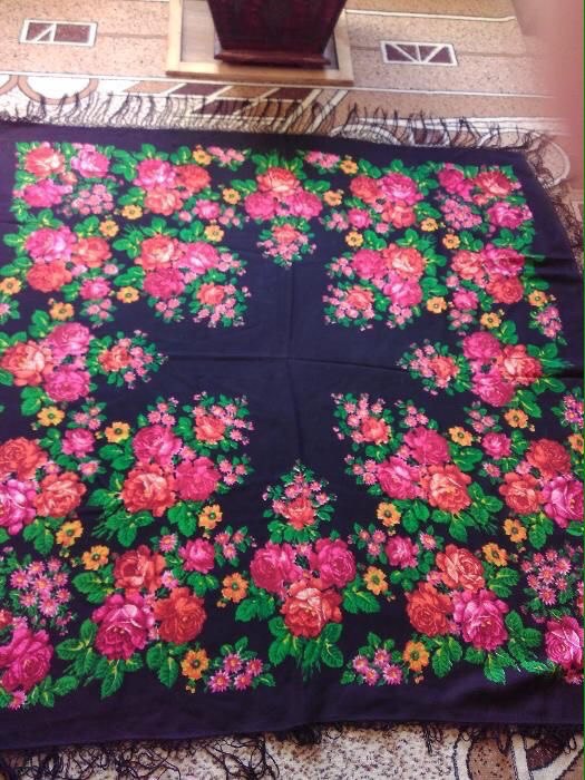 Здравствуйте! Помогите, пожалуйста, опознать, павловопосадский ли это платочек? Платок старый, бабушкин. Очень плотная шерсть, размер "гуляет" в пределах 100 х 100 см.