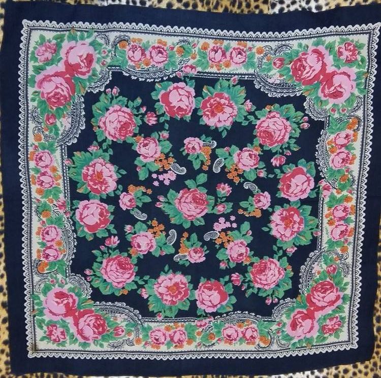 Здравствуйте! Помогите, пожалуйста, опознать, павловопосадский ли это платочек? Платок старый, бабушкин. Очень плотная шерсть, размер "гуляет" в пределах 100 х 100 см.