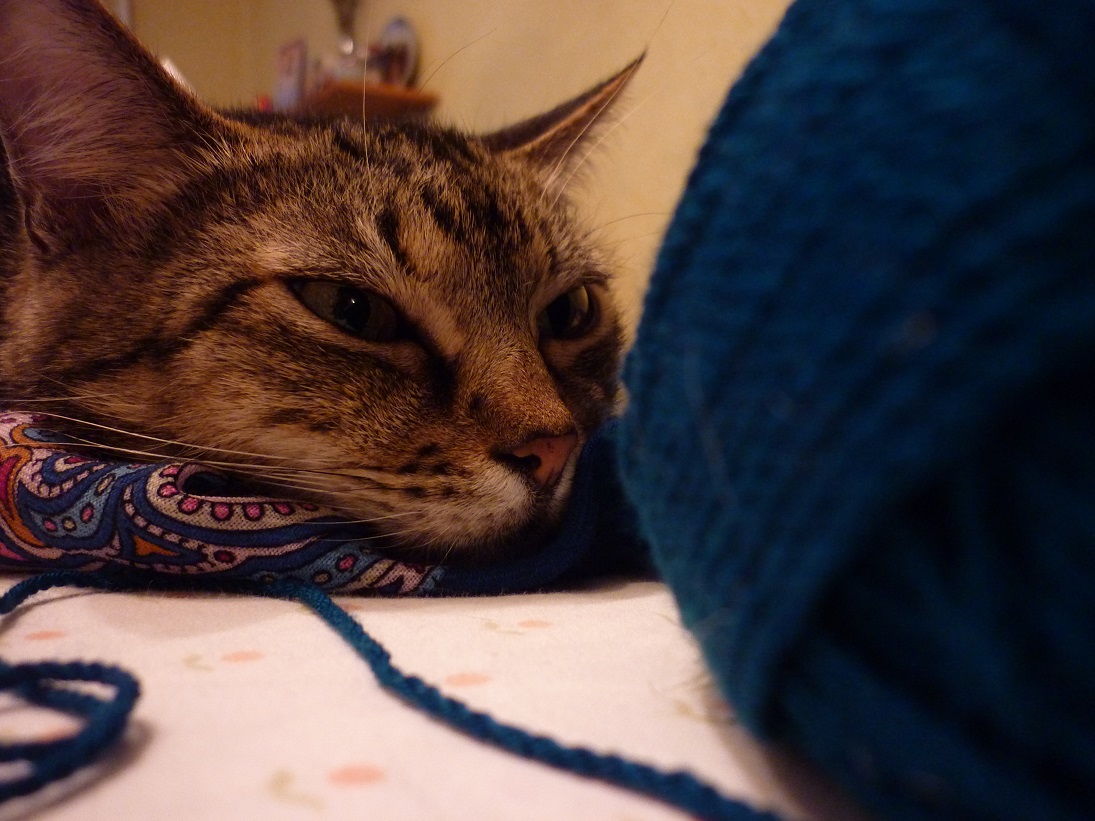 Елена Премудрая о да...у меня таскает мое вязание в мое отсутсвие. У меня так ровница кауни разодрана )) Теперь прячу все