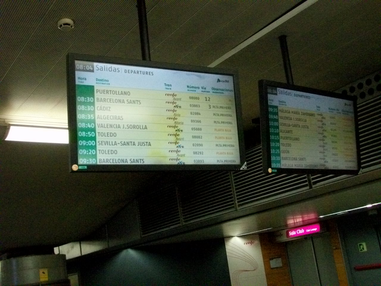 Путешествовать скоростным поездом мне очень понравилось. Он комфортный и дорога от Мадрида до Кордобы всего 1час 40 минут. Билеты можно купить в Мадриде на вокзале Аточа. Причем у билетной кассы есть табло показывающее не только наличие билетов, но и их класс. Сам вокзал не совсем понятен - там четыре выхода на разные направления и надо спрашивать куда идти. И Кордоба не конечная станция. Только по времени выезда и по номеру поезда я поняла, на какой поезд мне нужно. Конечная станция у этого поезда была Кадис.