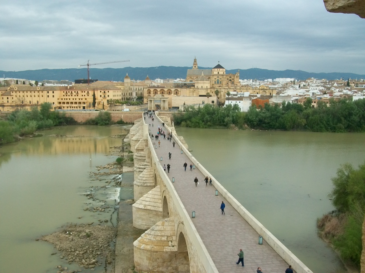 Вторым знаменитым памятником Кордовы считается Римский мост (Puente Romano). Он был построен еще при Цезаре. Длина этого сооружения – около 230 м. На одном конце моста стоят старинные ворота дель Пуэнте (Puerta del Puente), когда-то они служившие входом в город. Собор за ними.