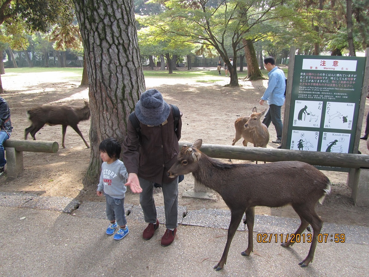 Милая пара: дедушка и внук, дедушка убеждает внука,что олень хороший)))