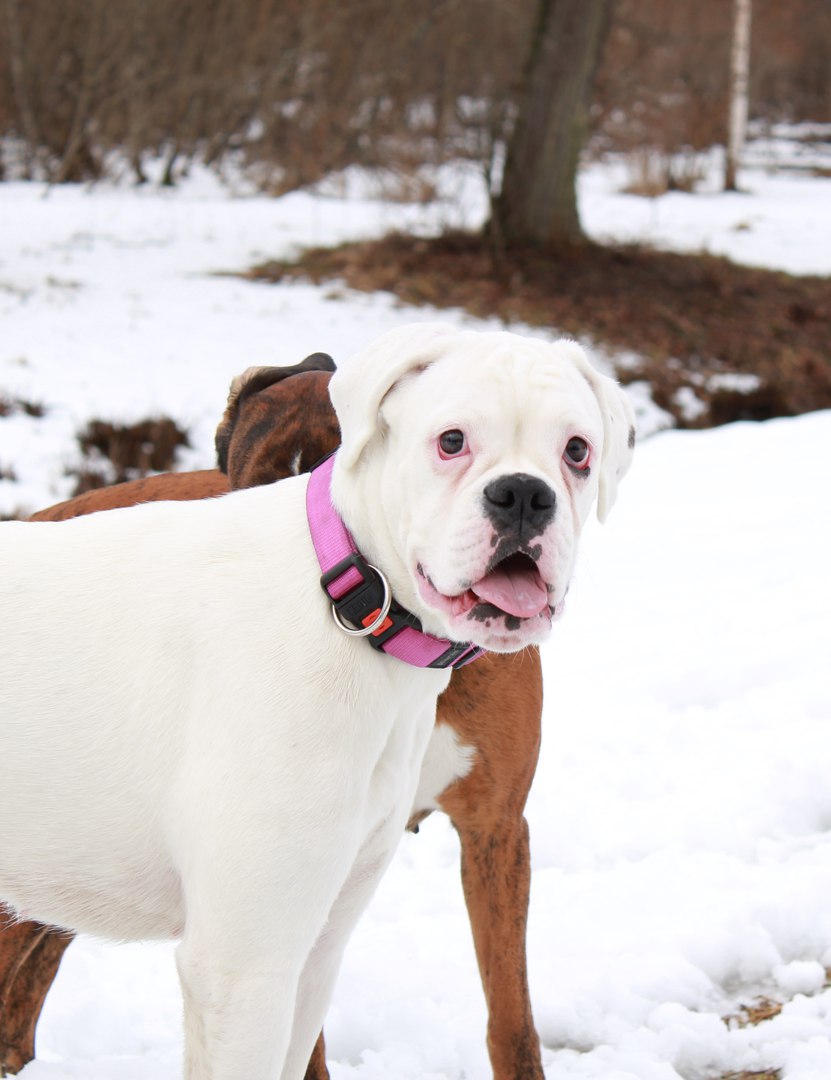 ALLA OK.- да, Марфуша тоже дочь Тильды, всего родилось 8 щенков, из них две беленькие девочки. В России и Европе боксеры этого окраса к дальнейшему разведению не допускаются, признает их только американский клуб, если я не ошибаюсь. Внешность, конечно, особенно у щенков- умилительная, но характер настоящий боксерский- веселый и куражный ))
