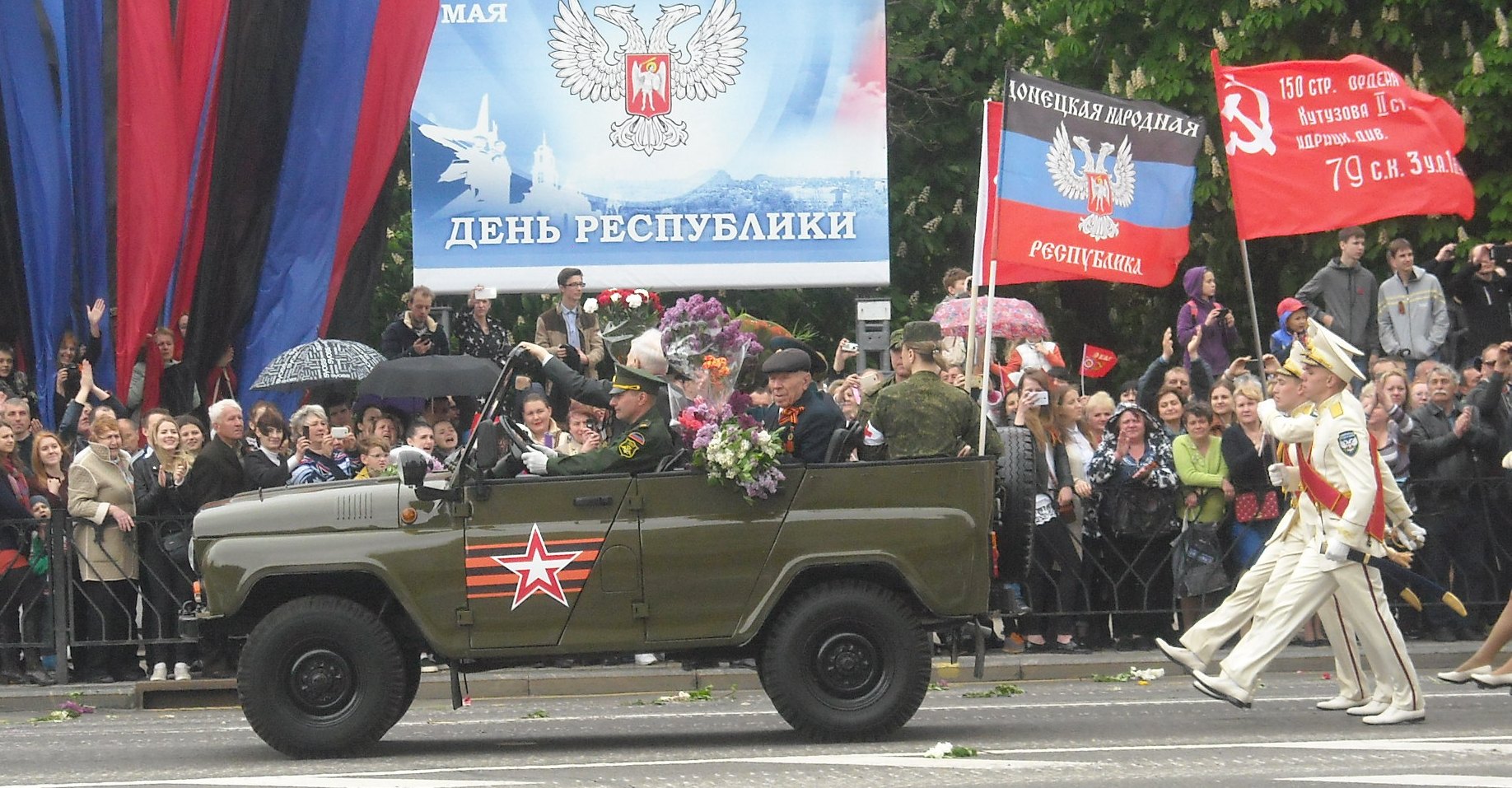 Если парад у нас "короткий", то Бессмертный полк проходит длинный путь, от центральной площади Ленина до парка Ленинского комсомола, ну и мы туда...