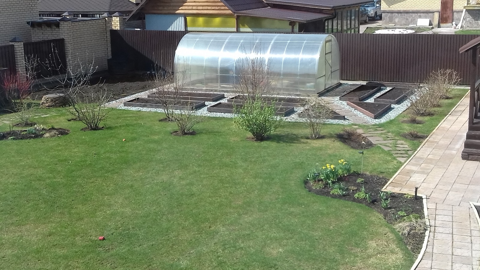 Вдохновившись огородом Джой, показываю свой. Вид, правда, рабочий. Холодно, порядок еще не навели. Фото кликабельны.