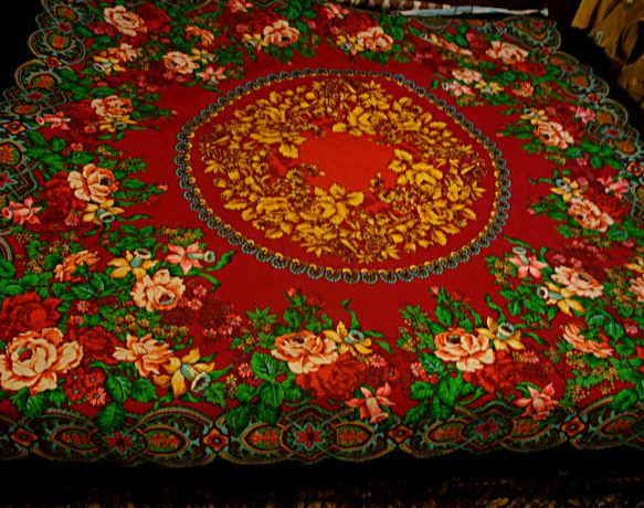 Хочу показать недавно приобретенную шаль Белые розы, колорит которых мне неизвестен, может быть кто-то его знает. На платке нашла штамп Мануфактуры. Добавлю, что платок очень трудно снимать, вспышка искажает цвета, а без вспышки темно и размыто получается. На деле платок лучше, чем на фото.