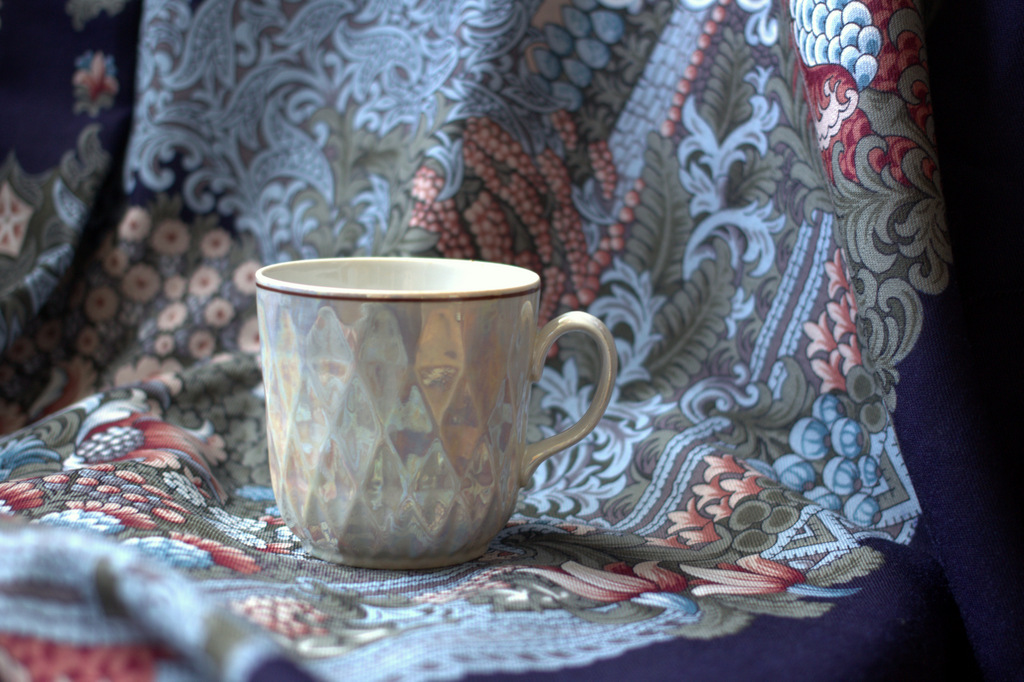Купила эти чашки "на дорожке" (Кликните, чтобы почитать, что спрятано под катом)...для своих сыновей-подростков. Как раз к тому времени уже "подписалась" на Бархатную ночь - 14 и при покупке сразу подумала, что с эти платком чашки будут необычайно хорошо смотреться %))).