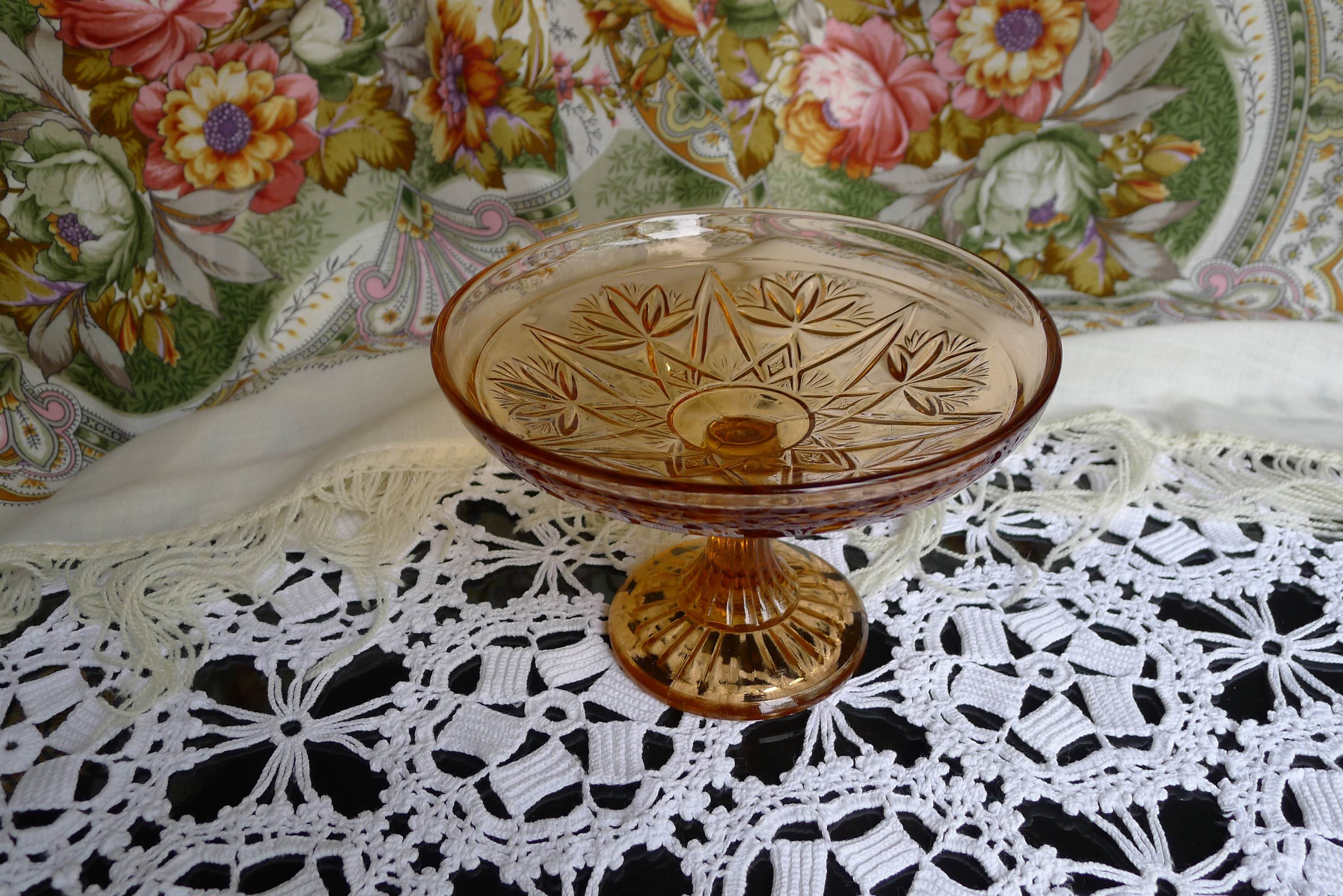 Раньше много подобного стекла было, все от него давно уже избавились. А я храню, потому как нравится, хоть никакой ценности и не имеет. Какого времени, точно не скажу, думаю, что сразу-послевоенные. Сколько себя помню, всегда в буфете стояли эти и другие графинчики с притертыми пробками, вазочки для конфет и варенья, розетки. Это все, что осталось.